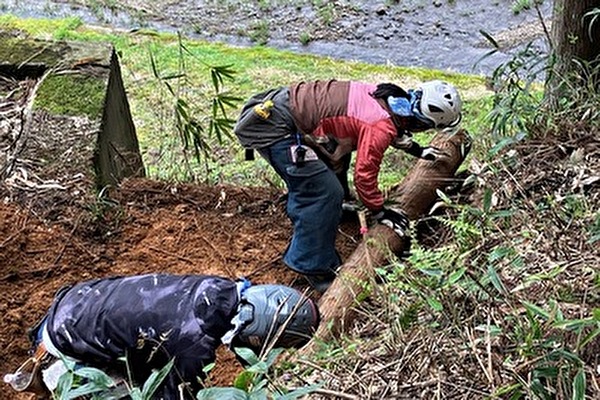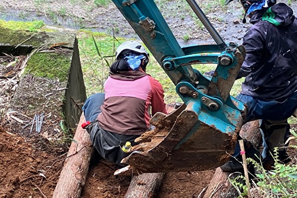 木などを使って土砂の安定化を図ります(木組みといいます※画像参照)