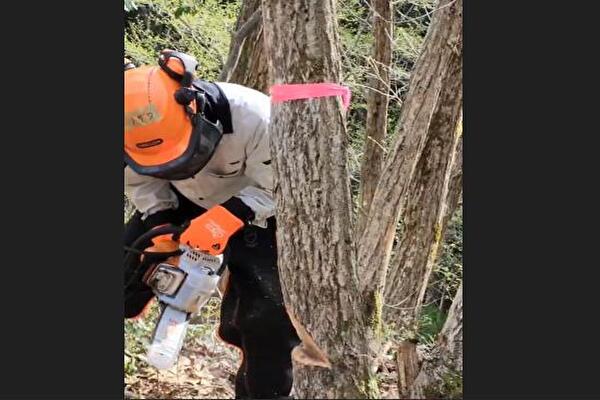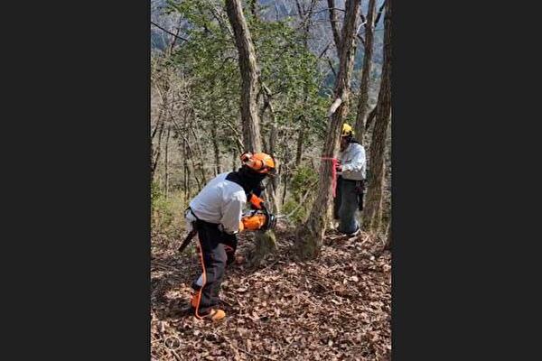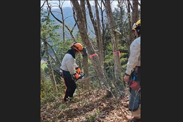 画像のように、先生の指導のもと20m程度ある木を切り倒したのですが、