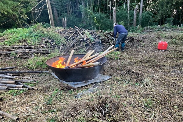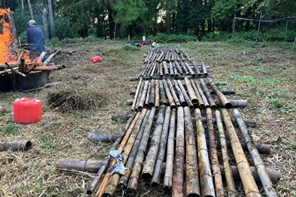 画像のように、乾燥させながら竹炭にしていきました。